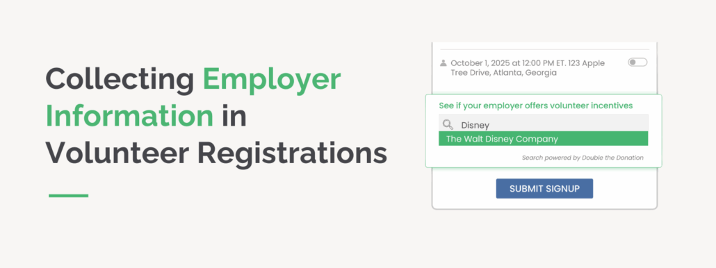 To overcome this challenge, organizations should add an employer information field to their volunteer registration forms. Even if it’s optional, including this field increases the chances of gathering valuable data that can help unlock corporate giving opportunities.